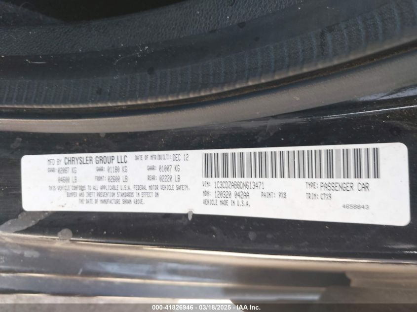 Color BlackCylinders 4Drive Front wheel driveVIN 1C3CDZAB8DN******State Run & Drive VerifiedDamage Front or back AutoRIA