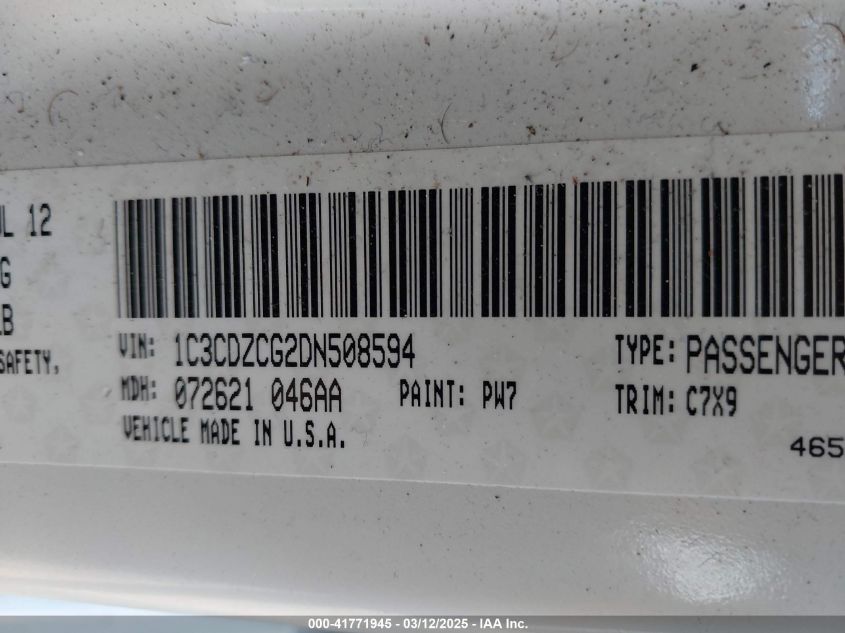 Color WhiteCylinders 6Drive Front wheel driveVIN 1C3CDZCG2DN******State Run & Drive VerifiedDamage Front or back AutoRIA
