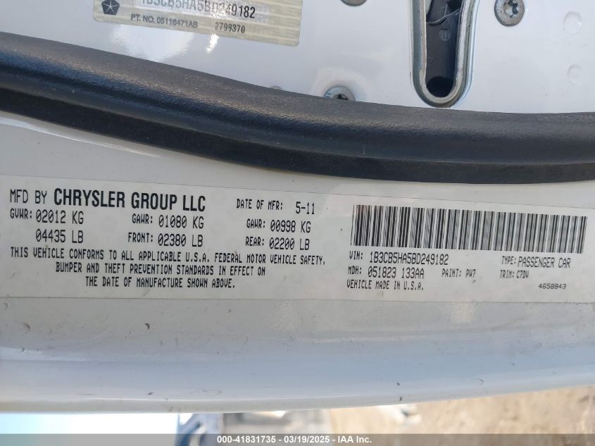 Color WhiteCylinders 4Drive Front wheel driveVIN 1B3CB5HA5BD******State Run & Drive VerifiedDamage Front or back AutoRIA