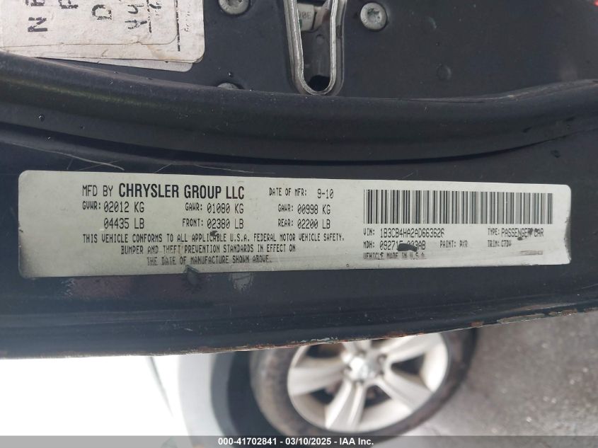 Color BlackCylinders 4Drive Front wheel driveVIN 1B3CB4HA2AD******State Run & Drive VerifiedDamage Front or backAuction date 2025-03-26 AutoRIA