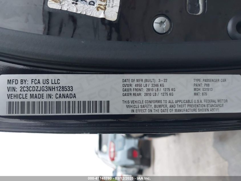 Color BlackCylinders 6Drive Rear wheel driveVIN 2C3CDZJG3NH******State Run & Drive VerifiedDamage Front or back AutoRIA