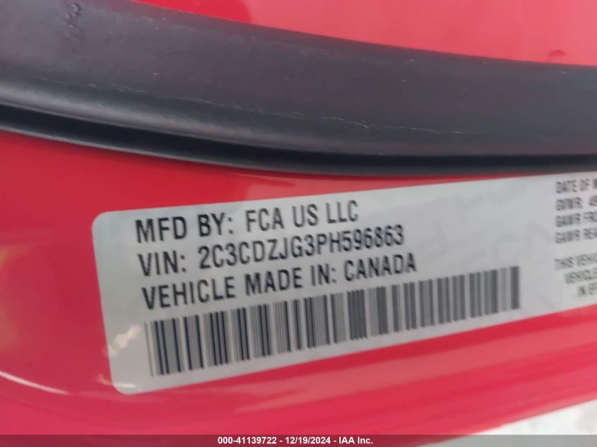 Color OrangeCylinders 6Drive Rear wheel driveVIN 2C3CDZJG3PH******State Run & Drive VerifiedDamage Front or back AutoRIA