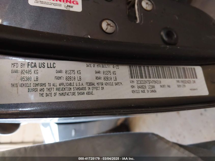 Color GrayCylinders 8Drive Rear wheel driveVIN 2C3CDZAT5FH******State Run & Drive VerifiedDamage Front or back AutoRIA