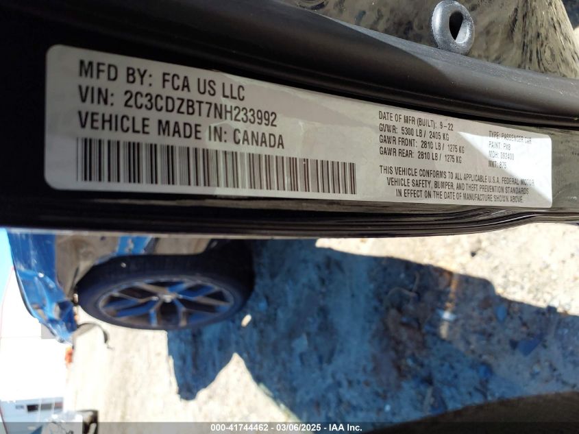 Color BlackCylinders 8Drive Rear wheel driveVIN 2C3CDZBT7NH******State Run & Drive VerifiedDamage Front or back AutoRIA