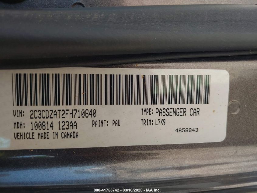 Color GrayCylinders 8Drive Rear wheel driveVIN 2C3CDZAT2FH******State Run & Drive VerifiedDamage Front or back AutoRIA