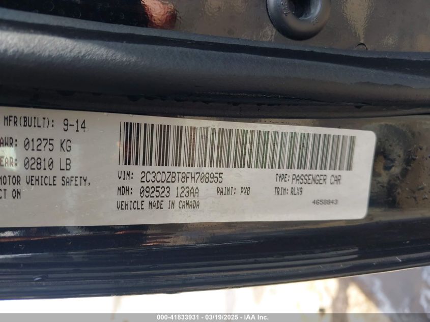 Color BlackCylinders 8Drive Rear wheel driveVIN 2C3CDZBT8FH******State Run & Drive VerifiedDamage Front or back AutoRIA