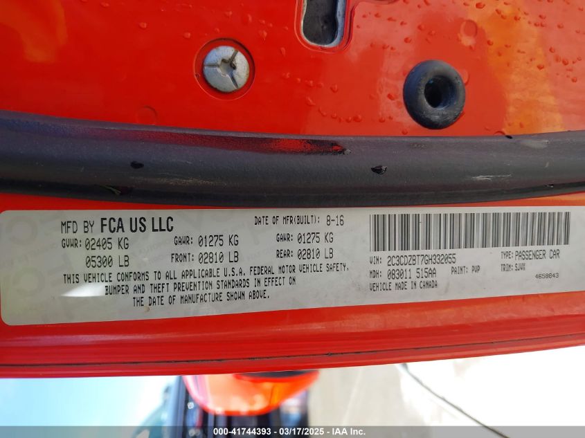 Color OrangeCylinders 8Drive Rear wheel driveVIN 2C3CDZBT7GH******State Run & Drive VerifiedDamage Front and back AutoRIA
