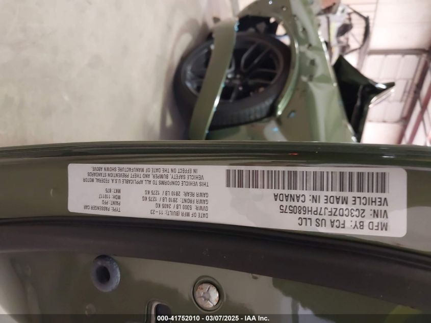 Color GreenCylinders 8Drive Rear wheel driveVIN 2C3CDZFJ7PH******State Run & Drive VerifiedDamage Front or back AutoRIA
