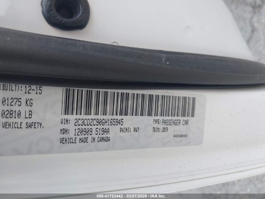 Color WhiteCylinders 8Drive Rear wheel driveVIN 2C3CDZC90GH******State Run & Drive VerifiedDamage Vandalism AutoRIA