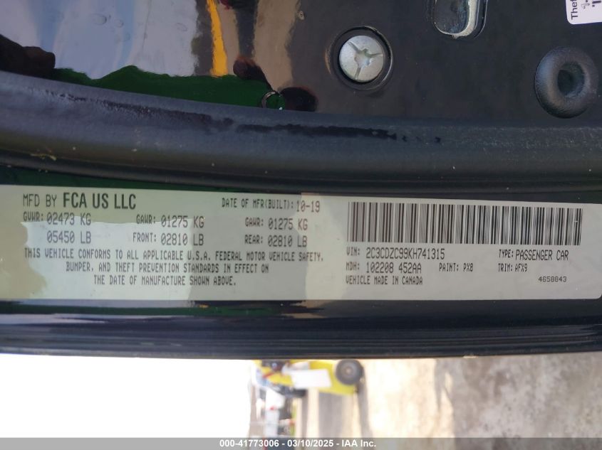Color BlackCylinders 8Drive Rear wheel driveVIN 2C3CDZC99KH******State Run & Drive VerifiedDamage Front or back AutoRIA