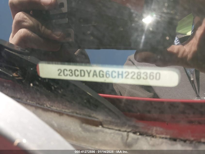 Color RedCylinders 6Drive Rear wheel driveVIN 2C3CDYAG6CH******State Run & Drive VerifiedDamage Front right AutoRIA