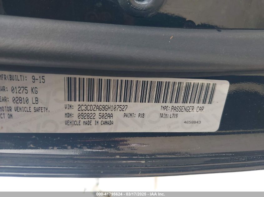 Color BlackCylinders 6Drive Rear wheel driveVIN 2C3CDZAG9GH******State Run & Drive VerifiedDamage Engine fire AutoRIA