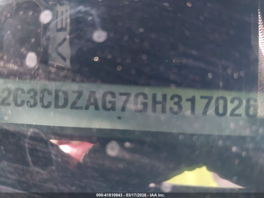 Color BlackCylinders 6Drive Rear wheel driveVIN 2C3CDZAG7GH******State Run & Drive VerifiedDamage Rear left AutoRIA