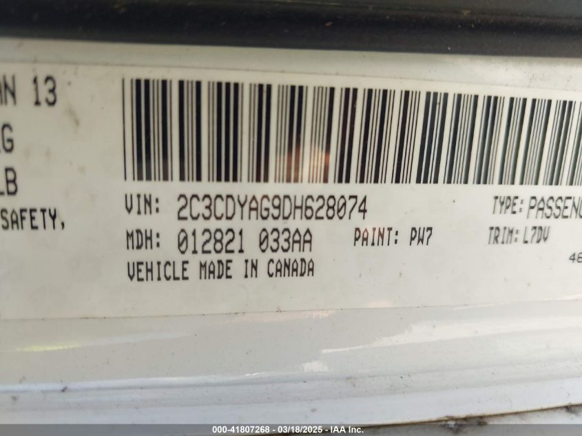 Color WhiteCylinders 6Drive Rear wheel driveVIN 2C3CDYAG9DH******State Run & Drive VerifiedDamage Front or back AutoRIA