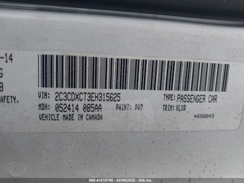 Color WhiteCylinders 8Drive Rear wheel driveVIN 2C3CDXCT3EH******State Run & Drive VerifiedDamage Front and back AutoRIA