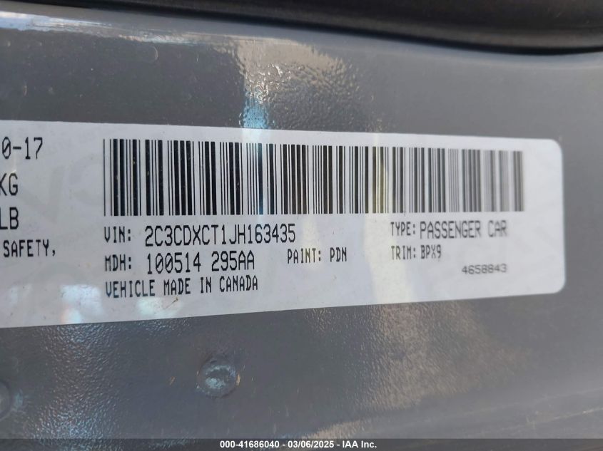Color GrayCylinders 8Drive Rear wheel driveVIN 2C3CDXCT1JH******State Run & Drive VerifiedDamage Front or back AutoRIA