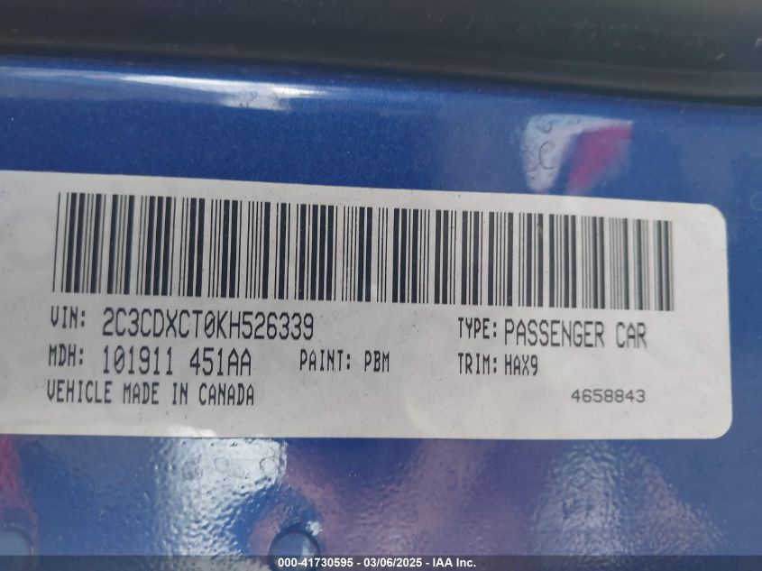 Color BlueCylinders 8Drive Rear wheel driveVIN 2C3CDXCT0KH******State Run & Drive VerifiedDamage Front and back AutoRIA