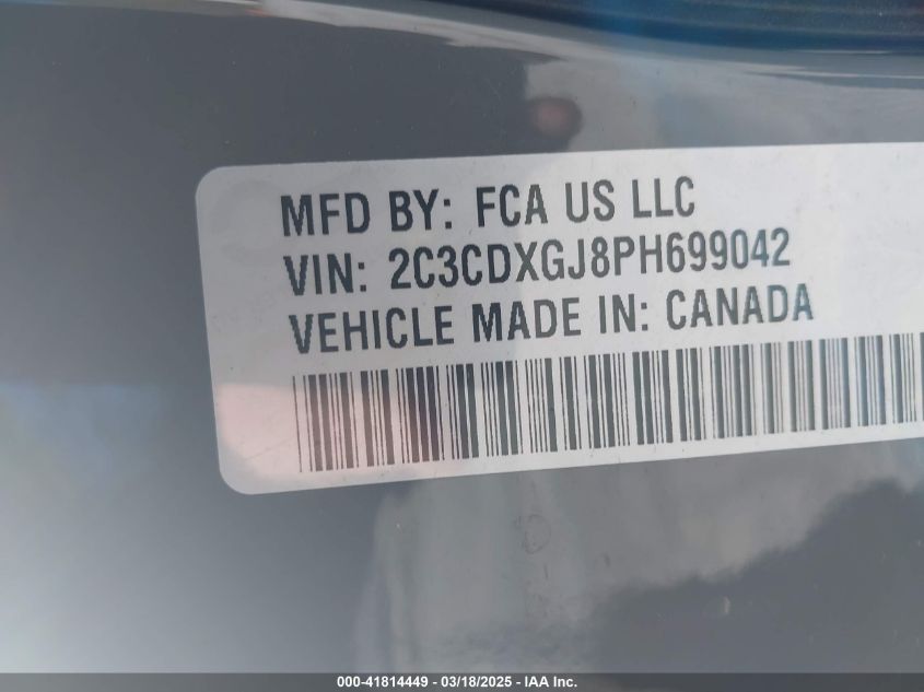 Color GrayCylinders 8Drive Rear wheel driveVIN 2C3CDXGJ8PH******State Run & Drive VerifiedDamage All over the car