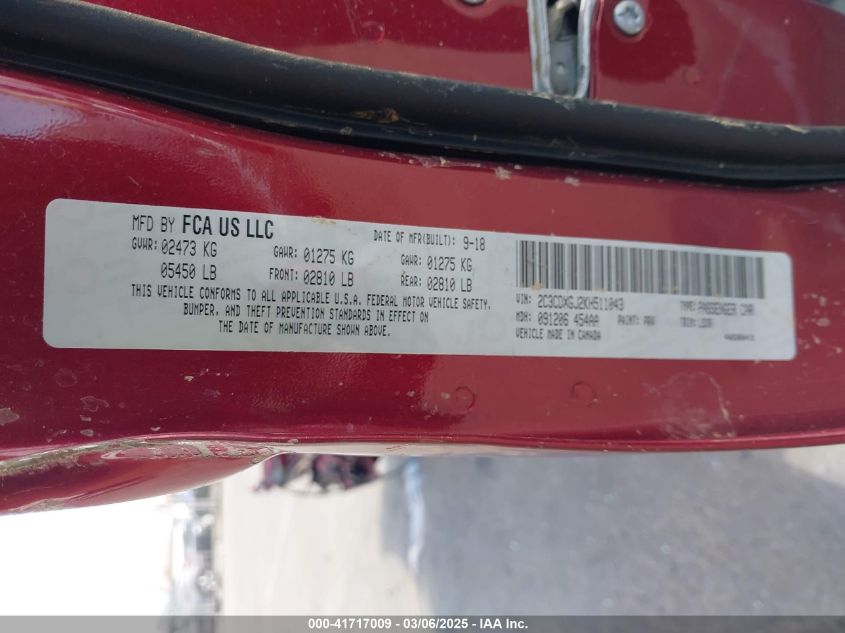 Color BurgundyCylinders 8Drive Rear wheel driveVIN 2C3CDXGJ2KH******State Run & Drive VerifiedDamage All over the car AutoRIA