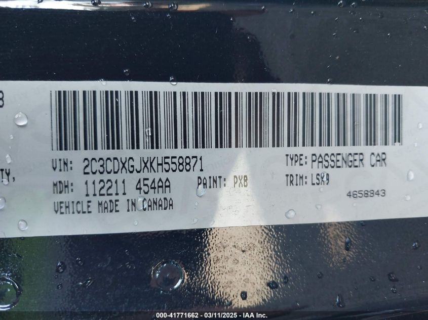 Color BlackCylinders 8Drive Rear wheel driveVIN 2C3CDXGJXKH******State Run & Drive VerifiedDamage Vandalism AutoRIA