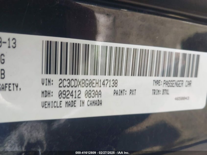 Color BlackCylinders 6Drive Rear wheel driveVIN 2C3CDXBG0EH******State Run & Drive VerifiedDamage Right side AutoRIA