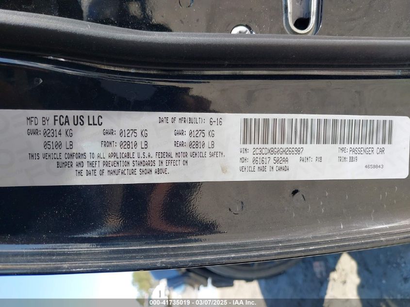 2016 DODGE CHARGER 2016 Gasoline, 3.6, Rear wheel drive, VIN - 2C3CDXBG0GH****** from the USA