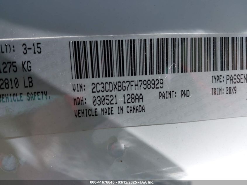 Color WhiteCylinders 6Drive Rear wheel driveVIN 2C3CDXBG7FH******State Run & Drive VerifiedDamage Back AutoRIA