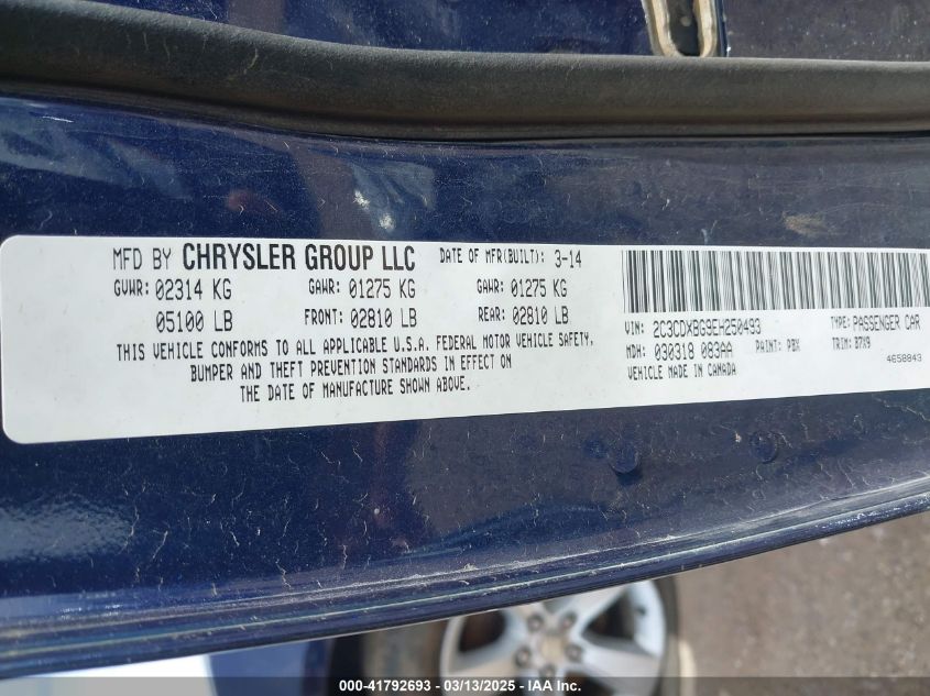 Color BlueCylinders 6Drive Rear wheel driveVIN 2C3CDXBG9EH******State Run & Drive VerifiedDamage All over the car AutoRIA