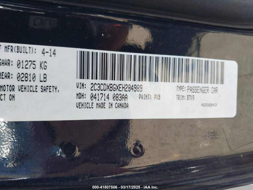 Color BlackCylinders 6Drive Rear wheel driveVIN 2C3CDXBGXEH******State Run & Drive VerifiedDamage Front left AutoRIA