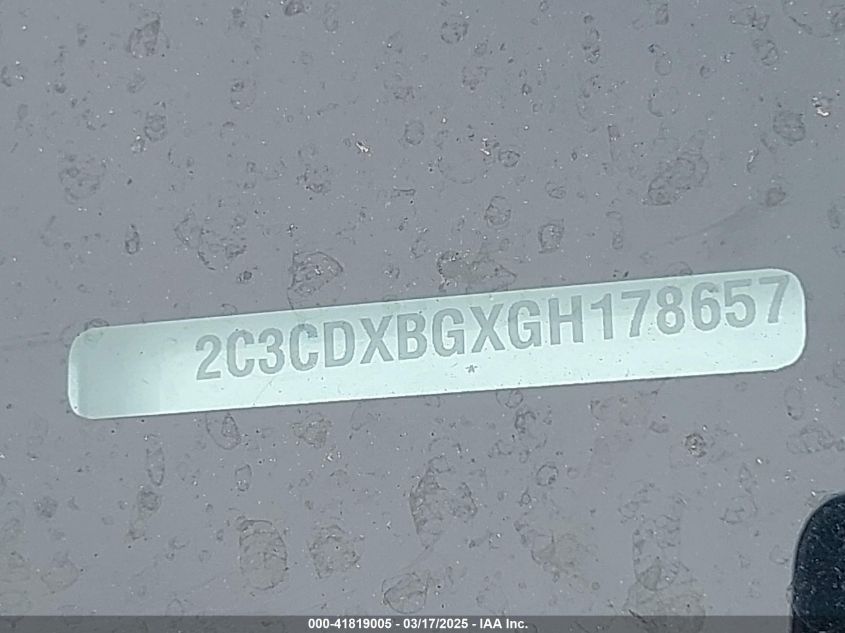 Color SilverCylinders 6Drive Rear wheel driveVIN 2C3CDXBGXGH******State Run & Drive VerifiedDamage VandalismAuction date 2025-03-27 AutoRIA
