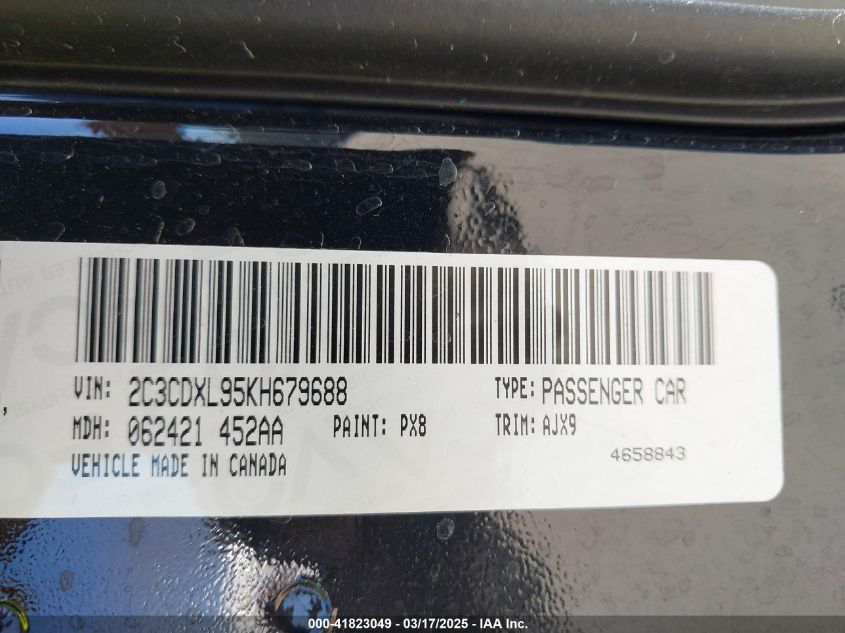 Color BlackCylinders 8Drive Rear wheel driveVIN 2C3CDXL95KH******State Run & Drive VerifiedDamage Front or back AutoRIA