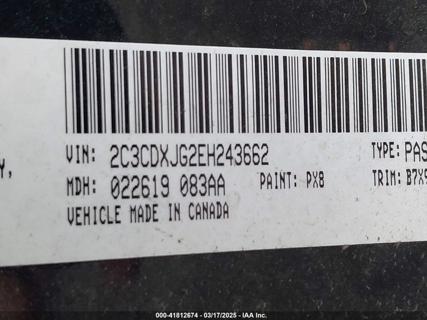 Color BlackCylinders 6Drive Full driveVIN 2C3CDXJG2EH******State Run & Drive VerifiedDamage Front and back AutoRIA