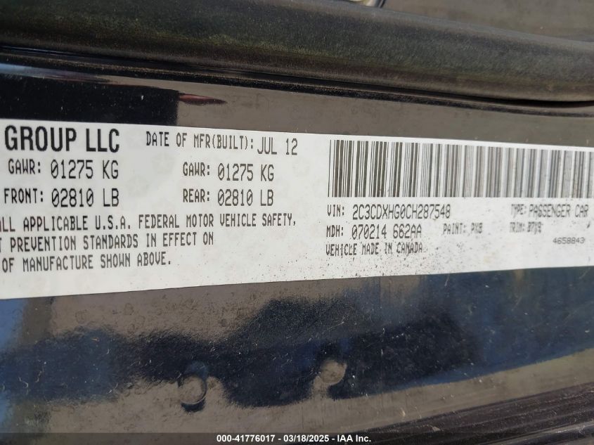 2012 DODGE CHARGER 2012 Gasoline, 3.6, Rear wheel drive, VIN - 2C3CDXHG0CH****** from the USA