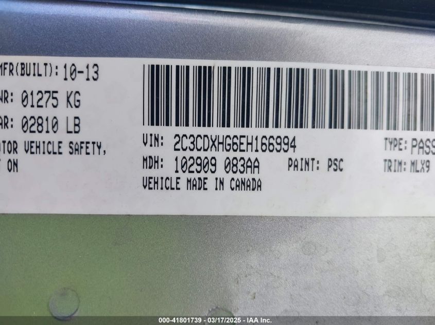 Color GrayCylinders 6Drive Rear wheel driveVIN 2C3CDXHG6EH******State Run & Drive VerifiedDamage Front left AutoRIA