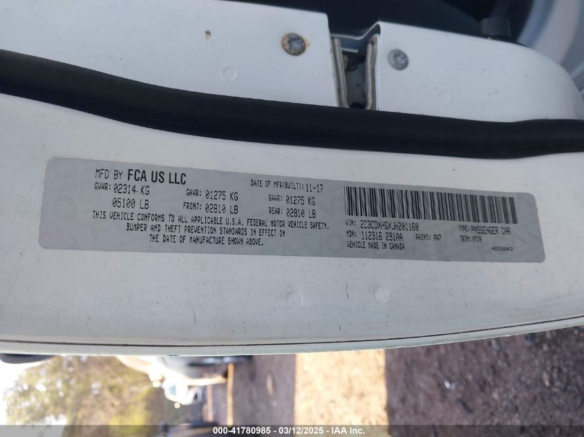 Color WhiteCylinders 6Drive Rear wheel driveVIN 2C3CDXHGXJH******State Run & Drive VerifiedDamage Front or back AutoRIA