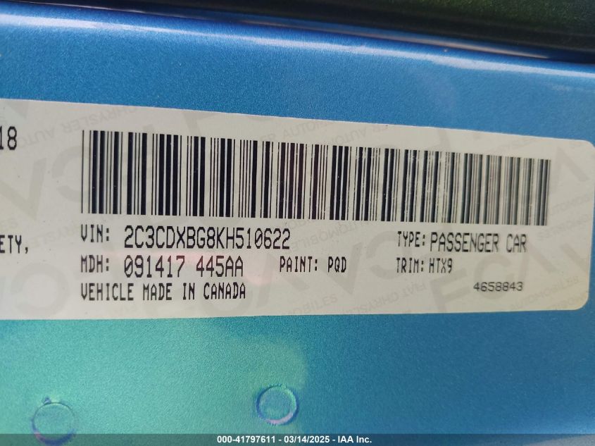 Color BlueCylinders 6Drive Rear wheel driveVIN 2C3CDXBG8KH******State Run & Drive VerifiedDamage Front or back AutoRIA