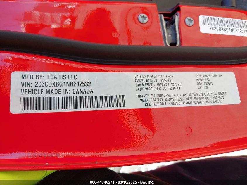 Color RedCylinders 6Drive Rear wheel driveVIN 2C3CDXBG1NH******State Run & Drive VerifiedDamage Right side