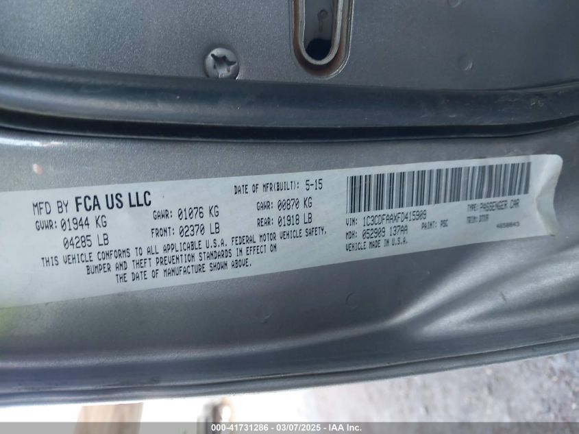 Color SilverCylinders 4Drive Front wheel driveVIN 1C3CDFAAXFD******State Run & Drive VerifiedDamage Insignificant AutoRIA