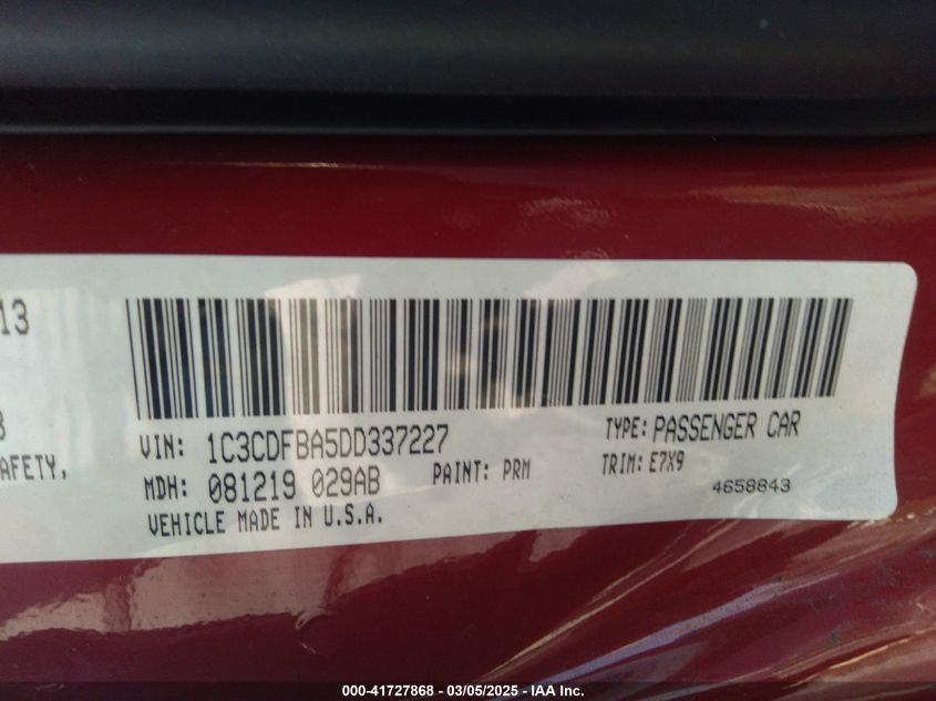 2013 DODGE DART 2013 Gasoline, 2.0, Front wheel drive, VIN - 1C3CDFBA5DD****** from the USA