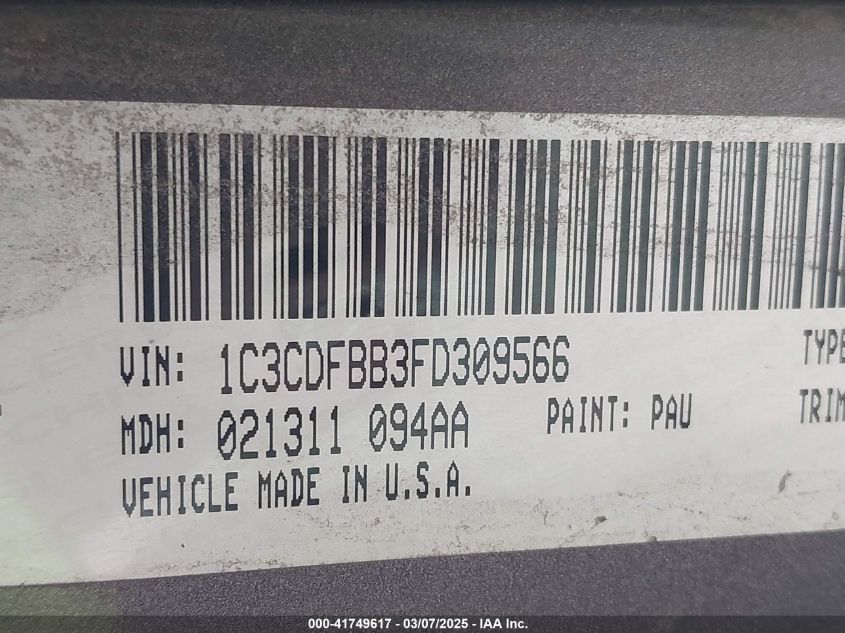Color GrayCylinders 4Drive Front wheel driveVIN 1C3CDFBB3FD******State Run & Drive VerifiedDamage Front left AutoRIA
