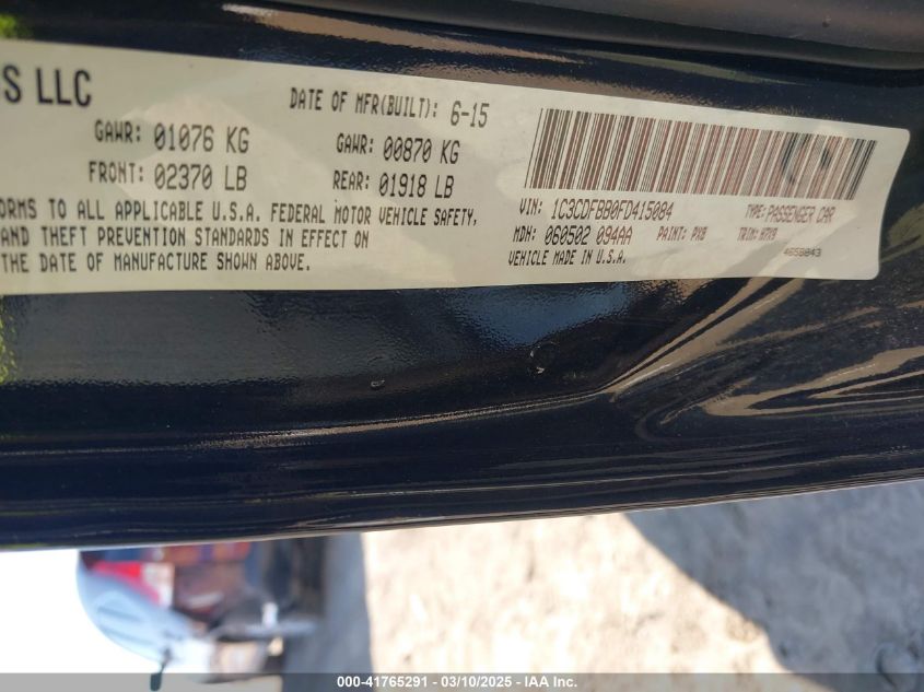 Color BlackCylinders 4Drive Front wheel driveVIN 1C3CDFBB0FD******State Run & Drive VerifiedDamage Front or back AutoRIA