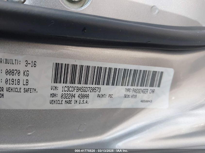 Color WhiteCylinders 4Drive Front wheel driveVIN 1C3CDFBA5GD******State Run & Drive VerifiedDamage Motor AutoRIA