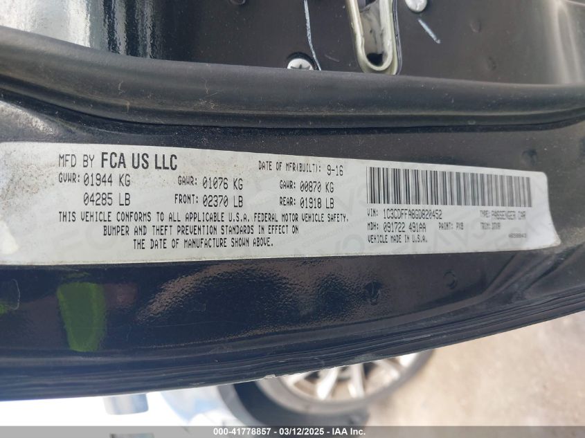 Color BlackCylinders 4Drive Front wheel driveVIN 1C3CDFFA8GD******State Run & Drive VerifiedDamage Front or back AutoRIA