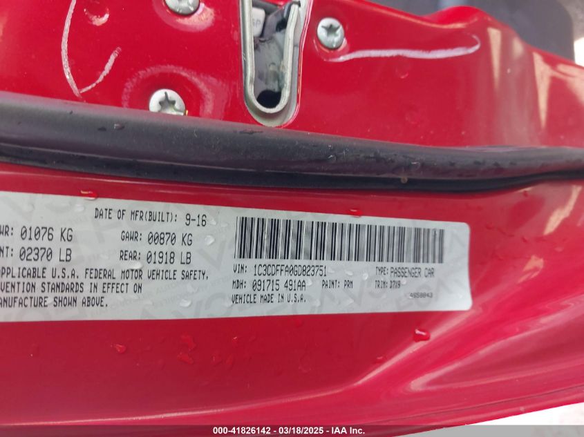2016 DODGE DART 2016 Gasoline, 2.0, Front wheel drive, VIN - 1C3CDFFA0GD****** from the USA