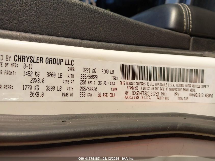Color WhiteCylinders 8Drive UnknownVIN 1C4SDHET3CC******State Run & Drive VerifiedDamage Front or back AutoRIA