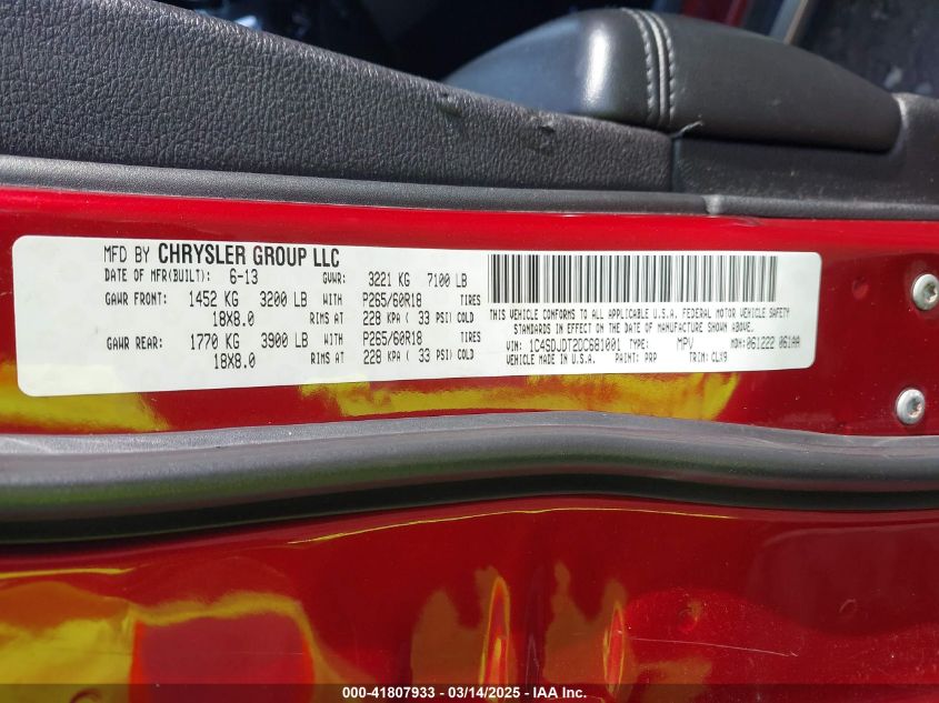 Color RedCylinders 8Drive Full driveVIN 1C4SDJDT2DC******State Run & Drive VerifiedDamage Front or back AutoRIA