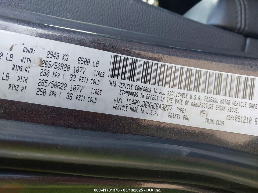 Color GrayCylinders 6Drive Full driveVIN 1C4RDJDGXHC******State Run & Drive VerifiedDamage Front or back AutoRIA