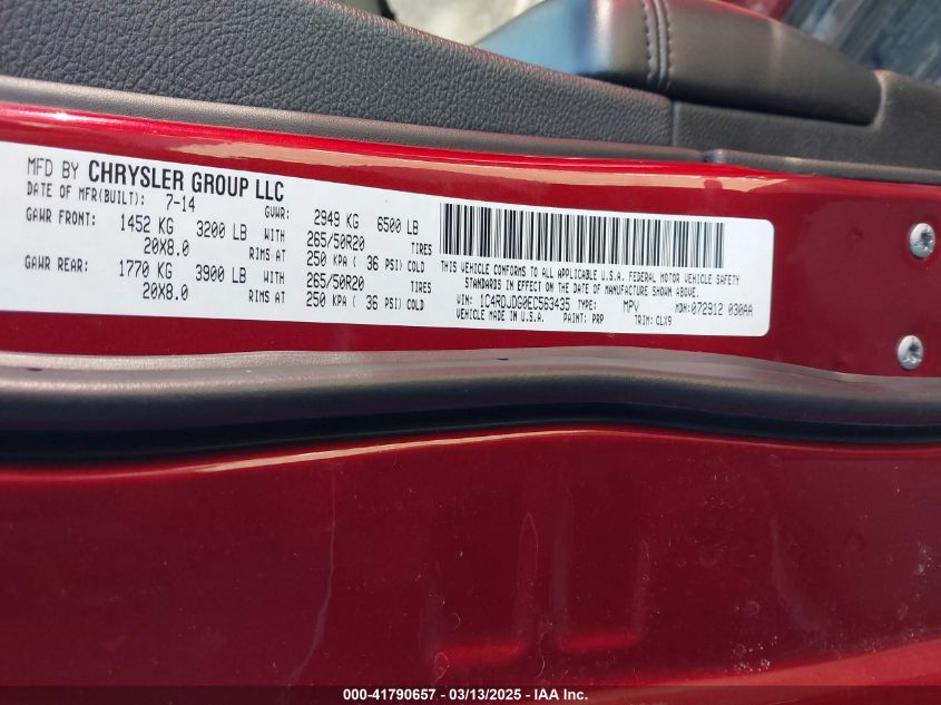 Color RedCylinders 6Drive Full driveVIN 1C4RDJDG0EC******State Run & Drive VerifiedDamage Front or back AutoRIA
