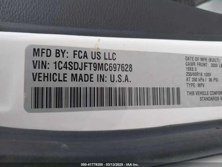 Color WhiteCylinders 8Drive Full driveVIN 1C4SDJFT9MC******State Run & Drive VerifiedDamage Water AutoRIA