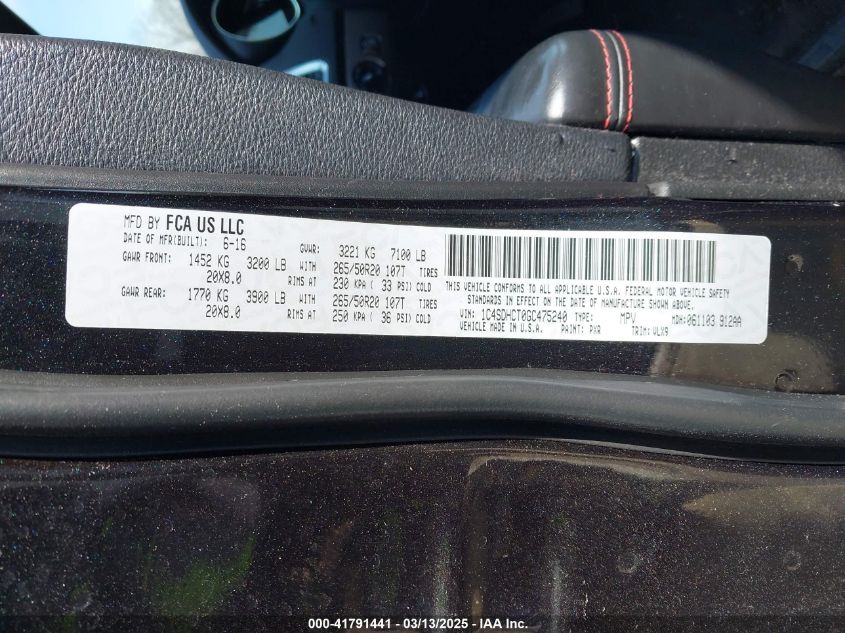 Color BlackCylinders 8Drive UnknownVIN 1C4SDHCT0GC******State Run & Drive VerifiedDamage Front or back AutoRIA